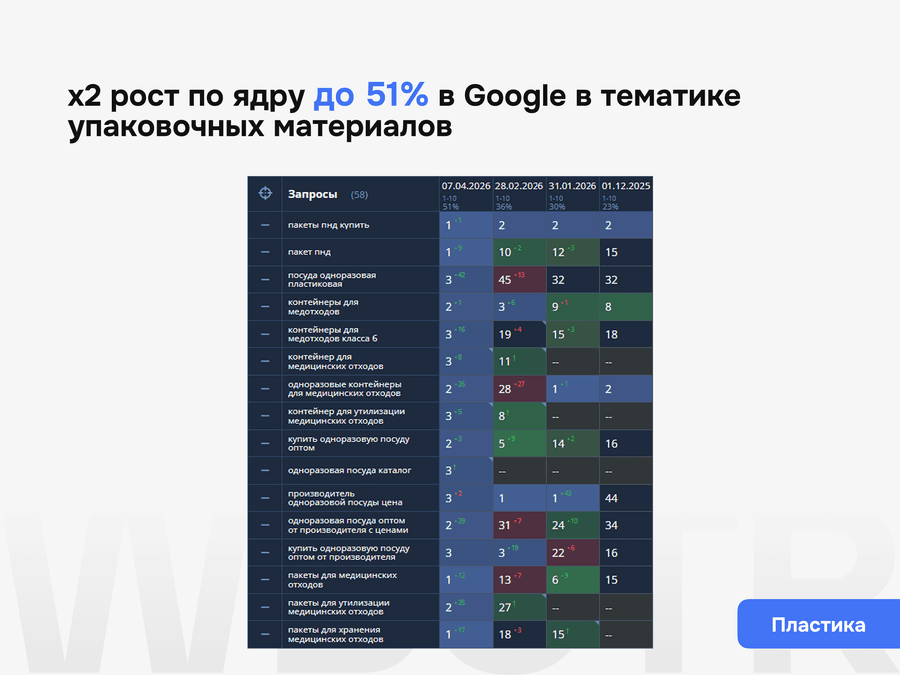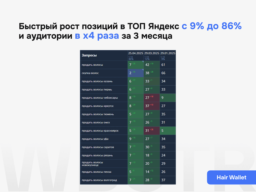 Поисковая оптимизация не заканчивается после внедрения базовых правок. Важно понимать, как сайт меняется после доработок, какие страницы усиливаются, где появляется рост, а где нужна следующая итерация работ. Поэтому мы не просто внедряем изменения, а контролируем их эффект и переводим сайт в режим системного развития.